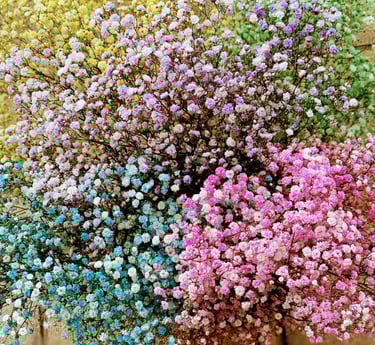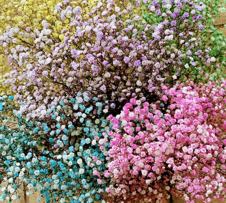 Colorful and cheerful, rainbow gypsophila transforms any arrangement into an explosion of fantasy. Perfect for creative, youthful, and lively decorations.