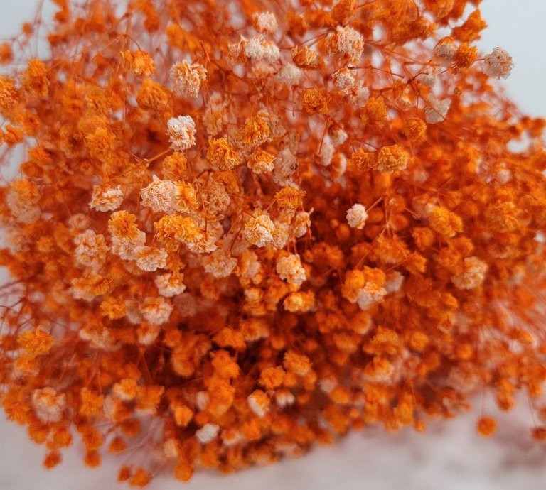 With its tiny flowers in warm tones, orange gypsophila adds a cheerful and modern touch to any floral arrangement. Ideal for adding color without losing delicacy.