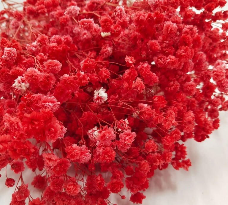 Elegant and vibrant, red gypsophila stands out for its small, intense flowers that bring passion and character to any floral arrangement. Perfect for eye-catching bouquets and bold decorations.